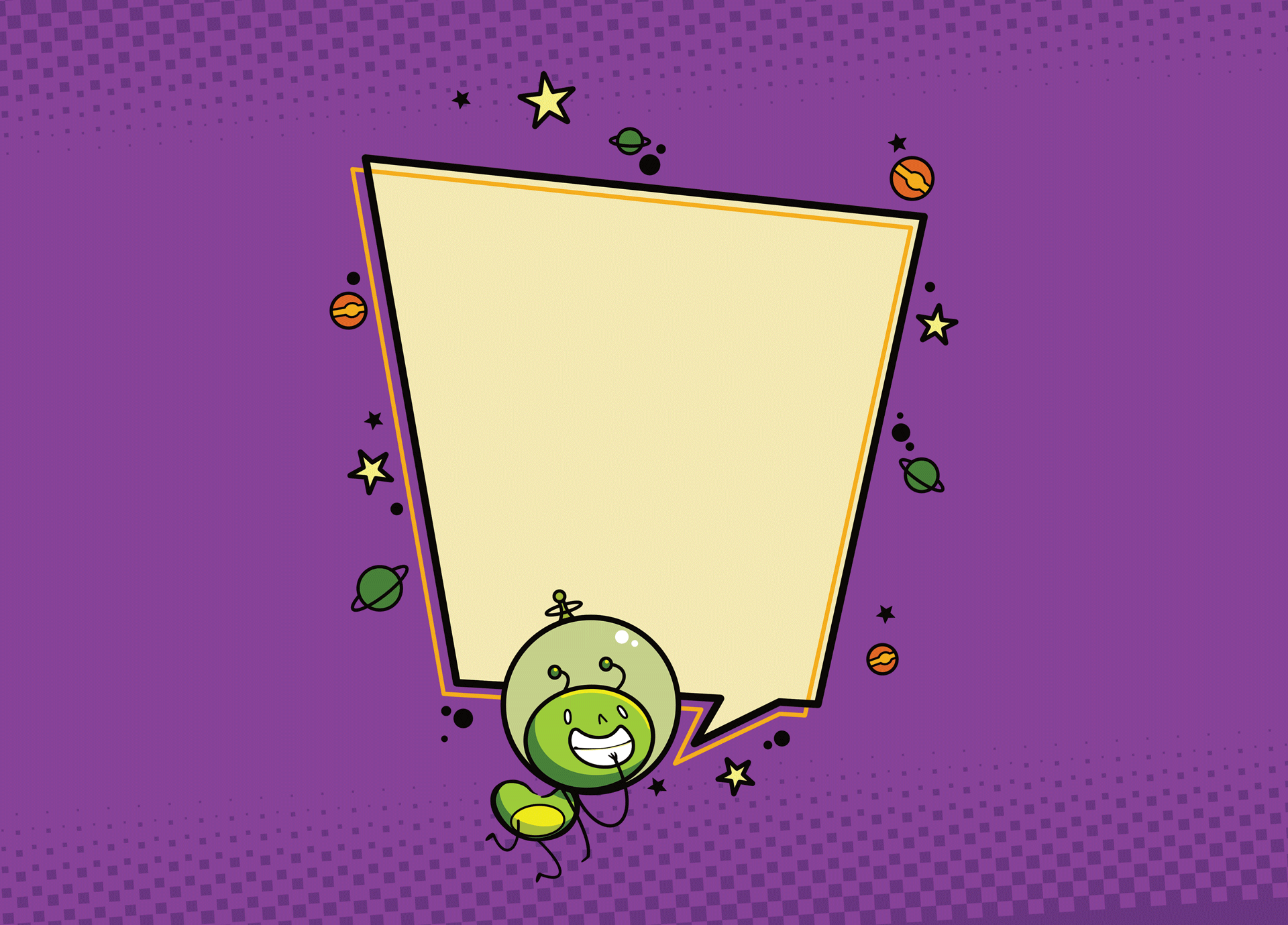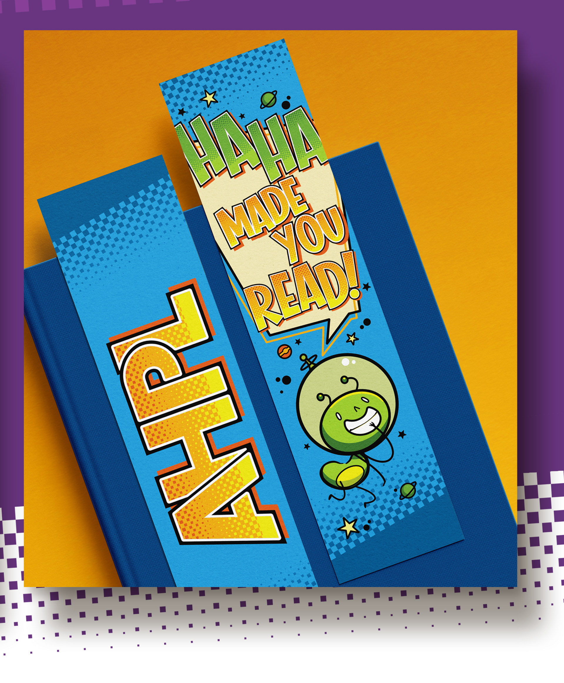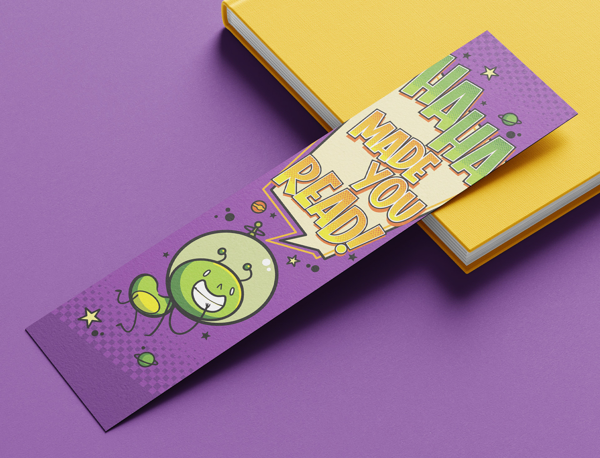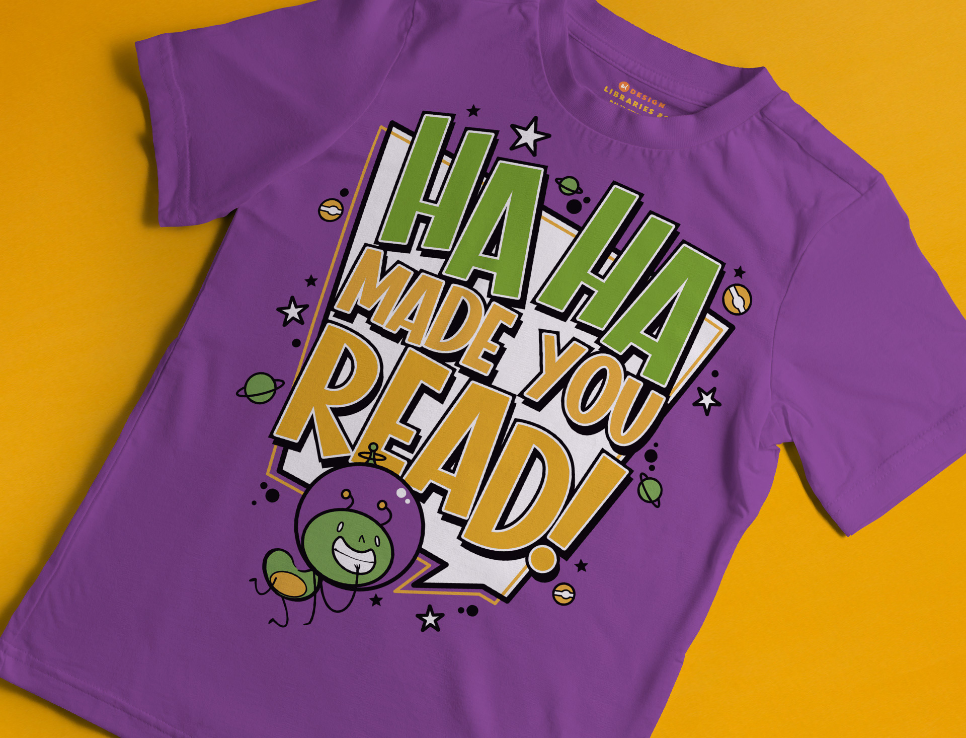 Connected to the the quote would be a mischievous alien mascot character. I went with a bold colorful style that would match the energy of the fun joke and enhance the promise of all the fun that Summer Reading at the library can be.