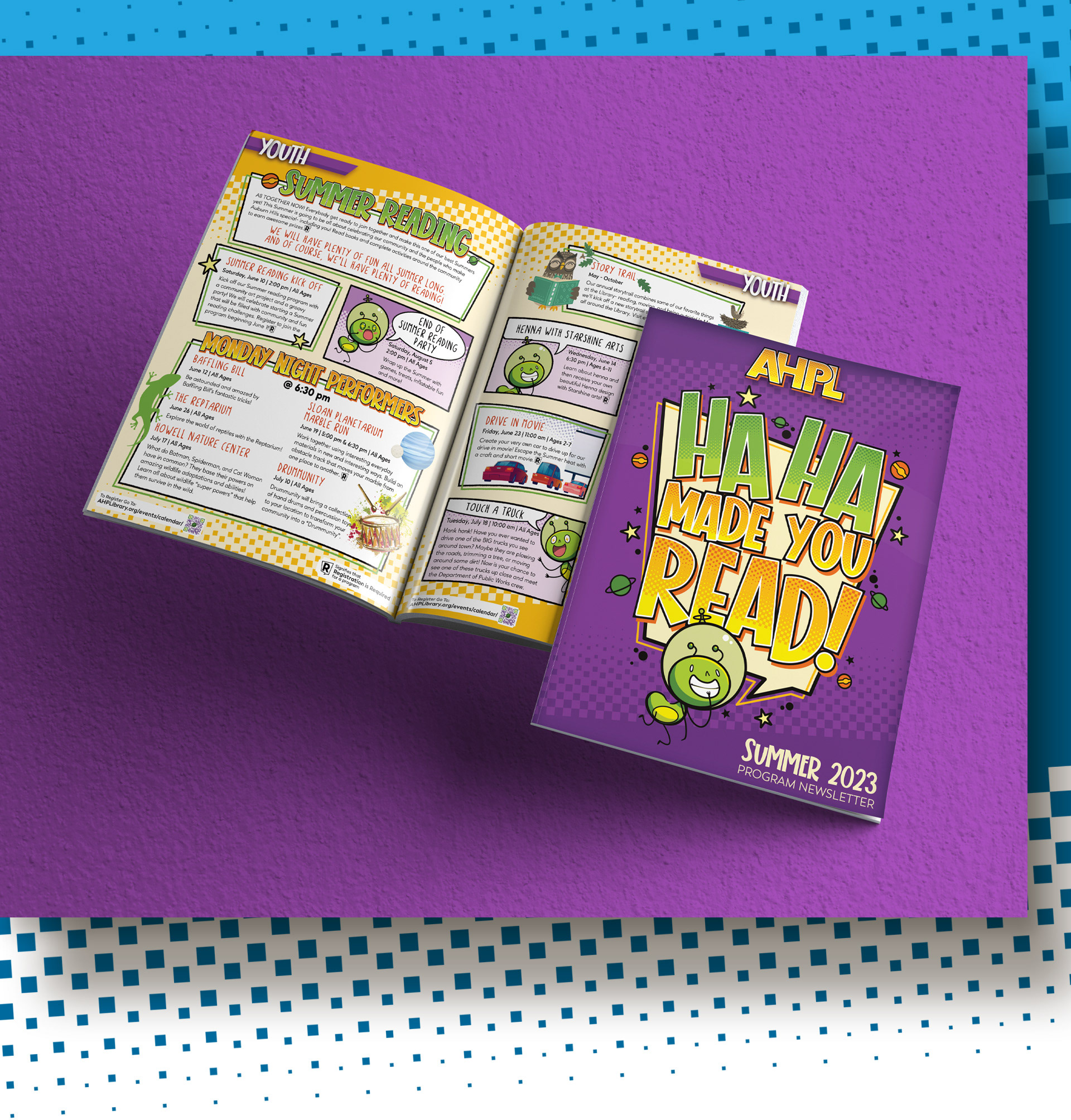 This Summer the Auburn Hills Public Library wanted to build their Summer Reading program around a key hook that would kids would love. Their team proposed the quote "Ha ha made you read!"