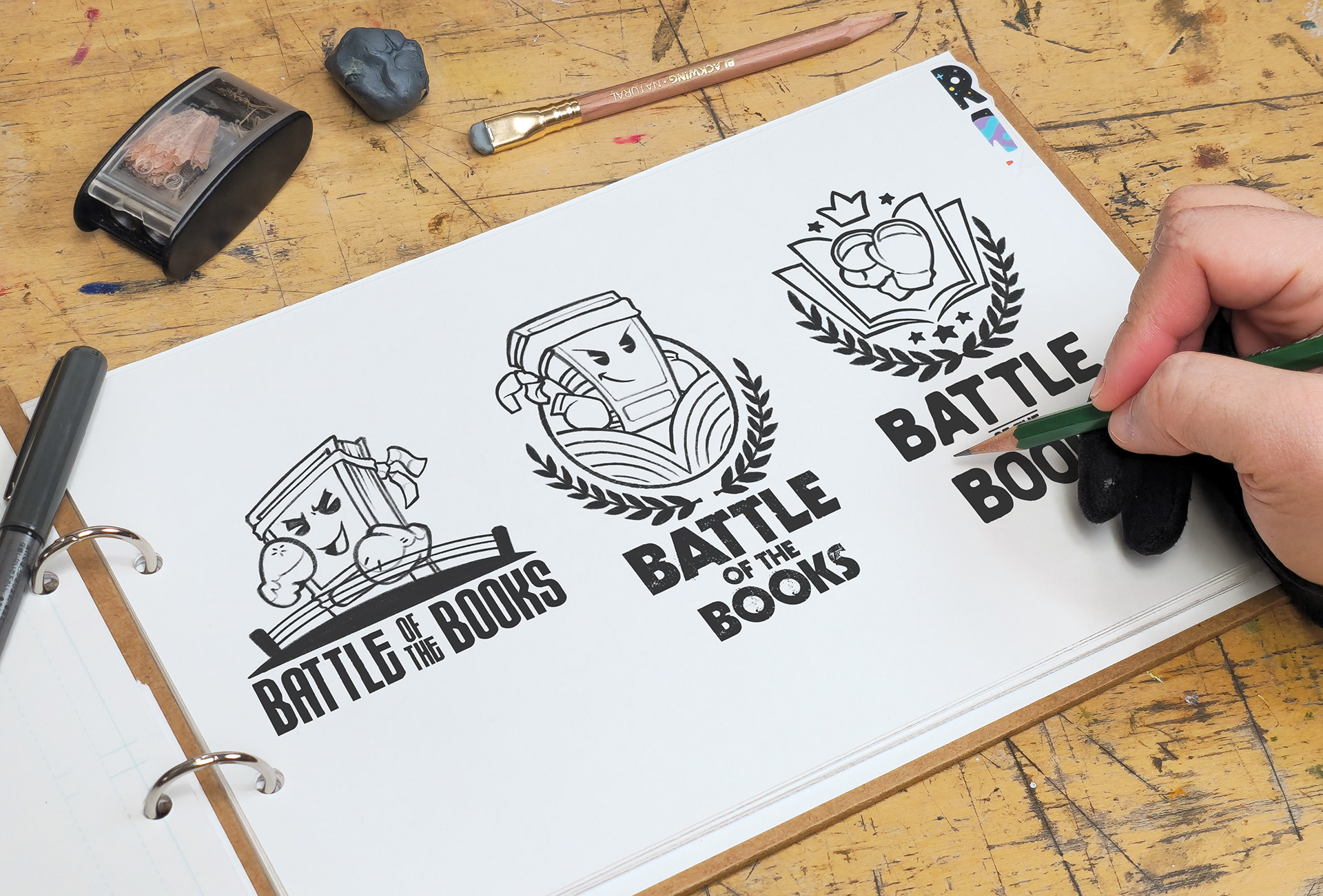 As with all my projects after the initial project outline meeting and contract, the first stage of work is sketching. Originally the library was planning on the new theme of the program revolving around boxing, champions, and the spirit of competition. I got to work creating a series of initial designs that embodied this direction for the library to pick between.
