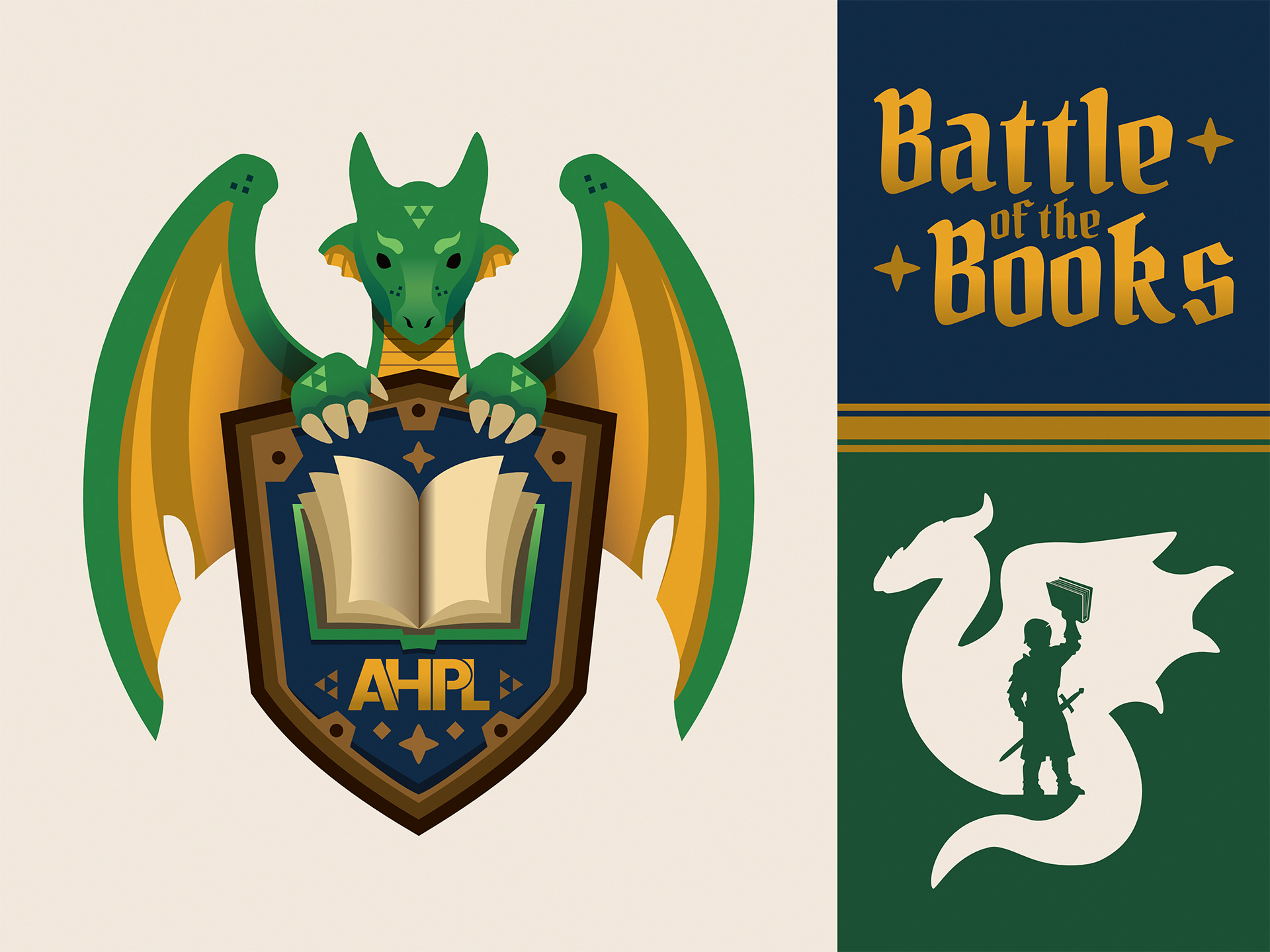 For Auburn Hills Public Library their annual Battle of the Books program is a large scale undertaking in which they are able to connect with hundreds of students throughout the schools in their community. To level up their program they commissioned a new custom piece of key art and branding to capture the attention of the student teams.