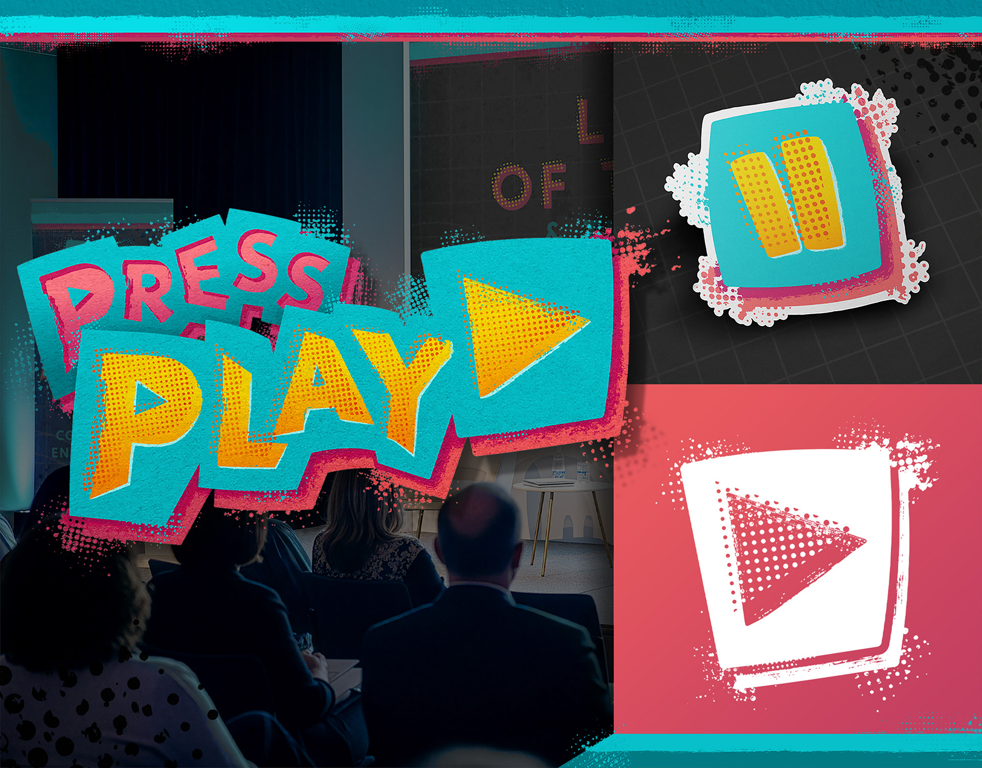 The theme they had chosen for this year was digital media playback, "Press Play" and they wanted something that incorporated the play button symbol. The challenge was to create the key logo, main banner, event badge, and then put together a brand kit I could hand off to their in-house designer who would then use this kit to create the rest of the marketing materials.