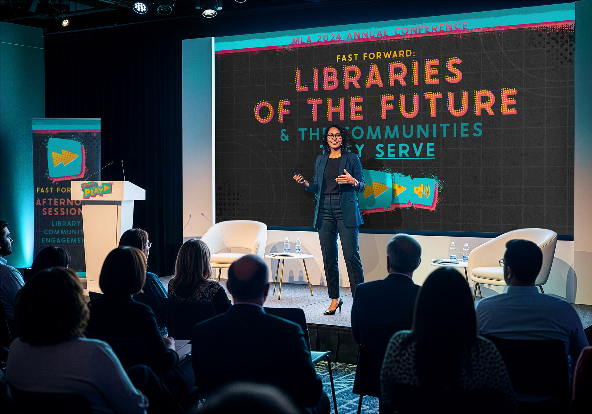 This conference needed a visual identity that emodied its technology and future-oriented theme while also being somthing festive that elevated the conference from a business event to a library celebration.